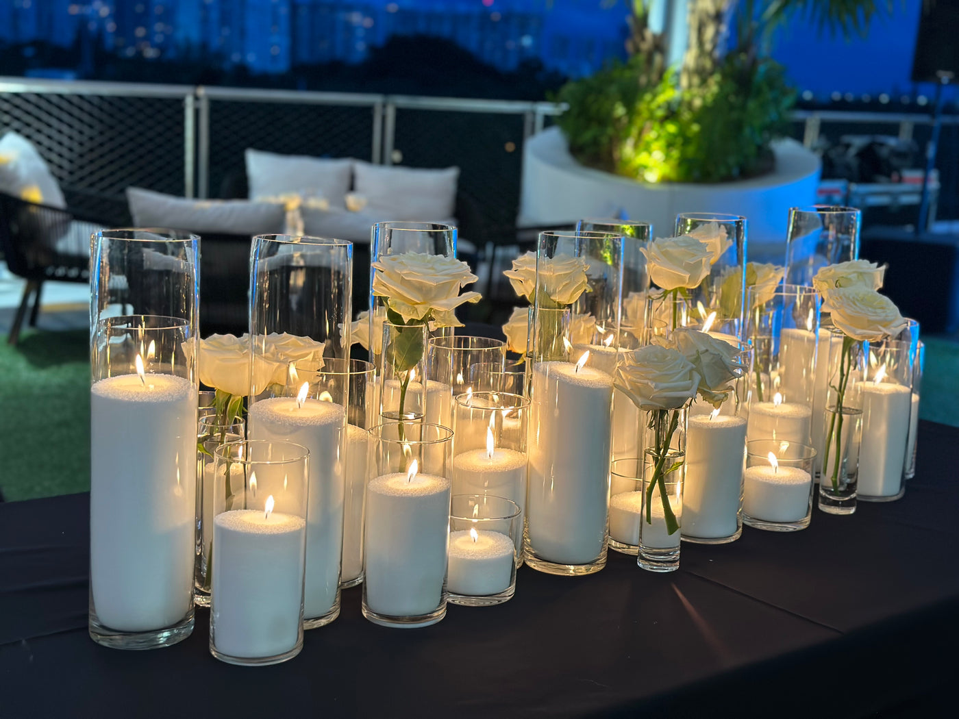 Create a breathtaking ambiance with our luxury candle rental service. Perfect for weddings, corporate events, proposals, and upscale gatherings, our premium candle decor enhances any setting with warm, romantic lighting. Serving Miami and surrounding areas with premium event styling.