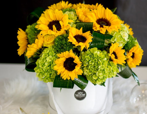 BOXED FLOWER ARRANGEMENT WITH SUNFLOWERSFeel as if you're strolling through an area of sunflower blooms and more. This wonderful mixed flowers bouq...