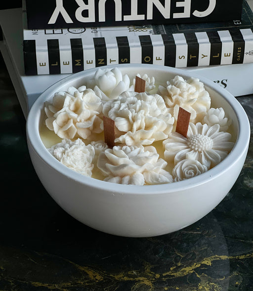 Large, natural soy wax handmade candle, with floral accent 7 inch diameter