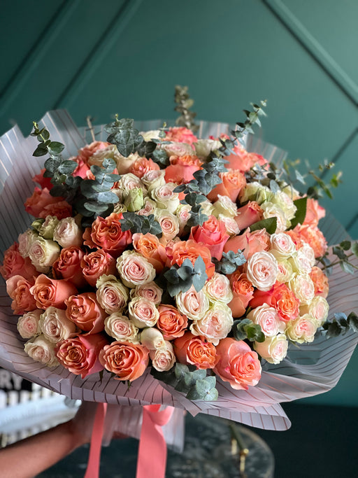 Large Hand-Crafted European Bouquet with Roses and Spray Roses A Luxurious European-Style Floral MasterpieceExperience the elegance of our Large Ha...