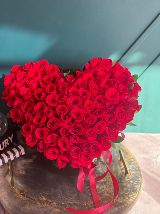 Stunning flower design in a box. Includes 75 roses in heart-shape