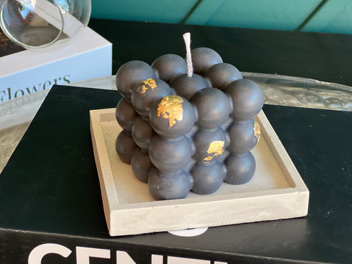 Set with Beautiful scented candle and matches on cement tray. Candle Size : 2" x 2"