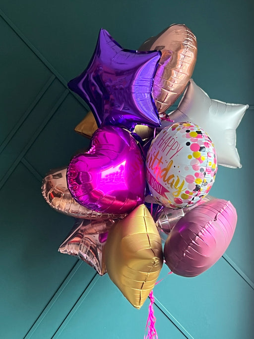 5-7 foil Balloons with Happy Birthday ballon on top