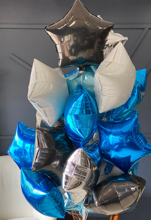 2 Dozen assorted foil Balloons.White, black, silver, light blue and royal blue balloons ( 18 inch)