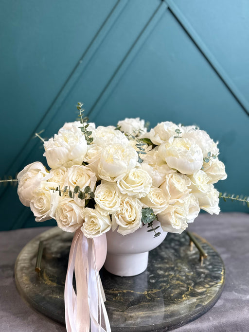 Timeless White-Luxury White Rose & Peony Arrangement