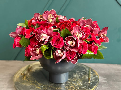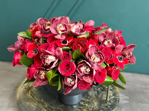 View full detailsRed Roses And Orchids In modern vase
