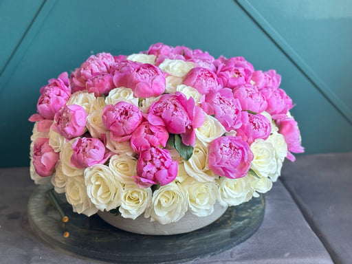 100 Roses and 50 Peonies – Luxury Floral Arrangement An Extraordinary Statement of Elegance and Abundance This breathtaking arrangement of 100 prem...