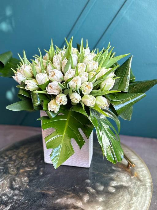150 White Tulips Hand-Crafted Bouquet – Elegant White Tulip Arrangement | Luxury Flowers Miami Make a grand statement with the timeless beauty of o...